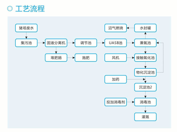 养殖污水经过调节池后,由提升泵送入水解酸化池,酸化水解池采用升流式厌氧污泥反应床形式(UASB反应池),同时,由接触氧化池回流至此的混合液在此反硝化菌作用下进行反硝化,达到生物脱氮的目的!养殖污水进入接触氧化池,进一步降解有机物且大量除磷!